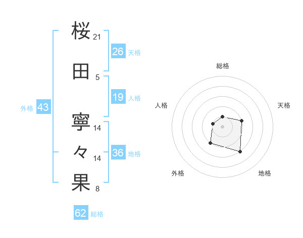 桜田 寧々果さんを姓名の画数から五運を鑑定