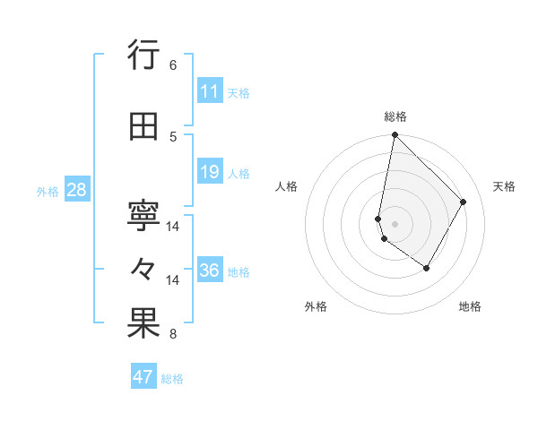 行田 寧々果さんを姓名の画数から五運を鑑定
