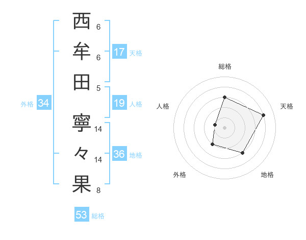 西牟田 寧々果さんを姓名の画数から五運を鑑定