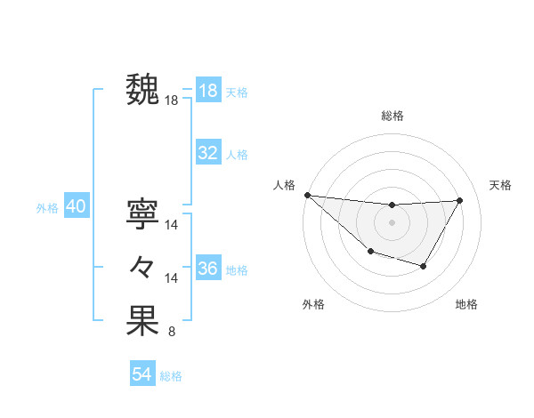 魏 寧々果さんを姓名の画数から五運を鑑定