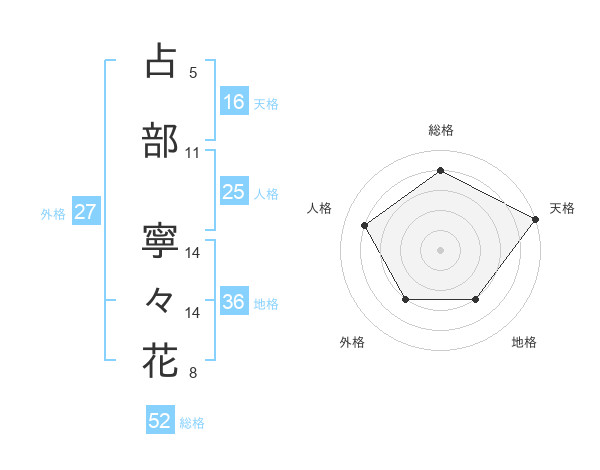 占部 寧々花さんを姓名の画数から五運を鑑定