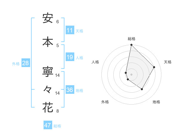 安本 寧々花さんを姓名の画数から五運を鑑定