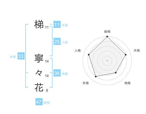 梯 寧々花さんの総格は47画の5点!