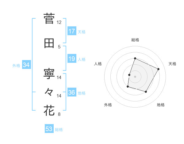 菅田 寧々花さんの総格は53画の3点!