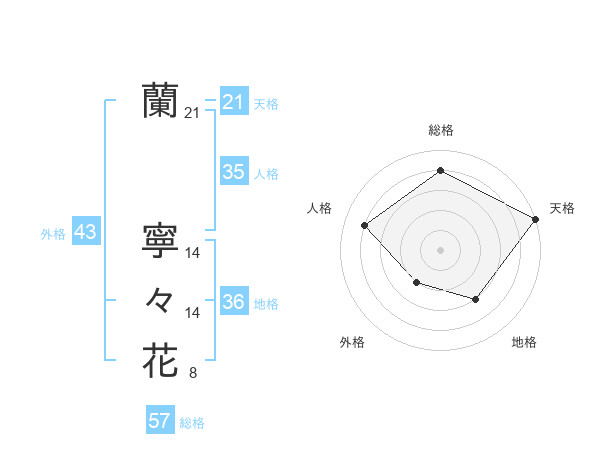 蘭 寧々花さんの天格は21画の5点!