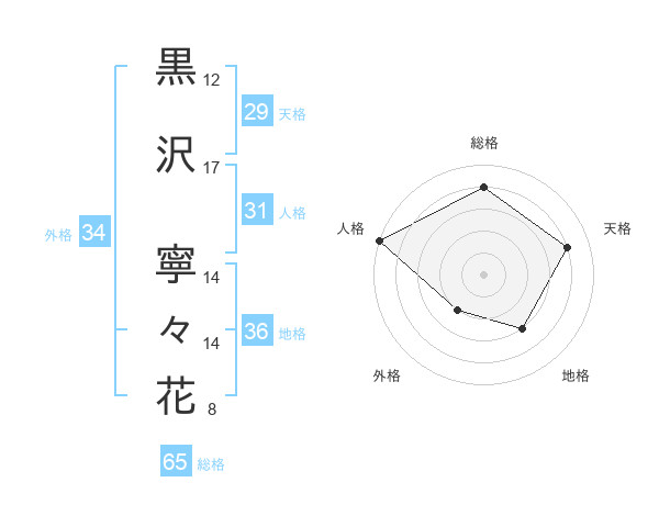 黒沢 寧々花さんを姓名の画数から五運を鑑定