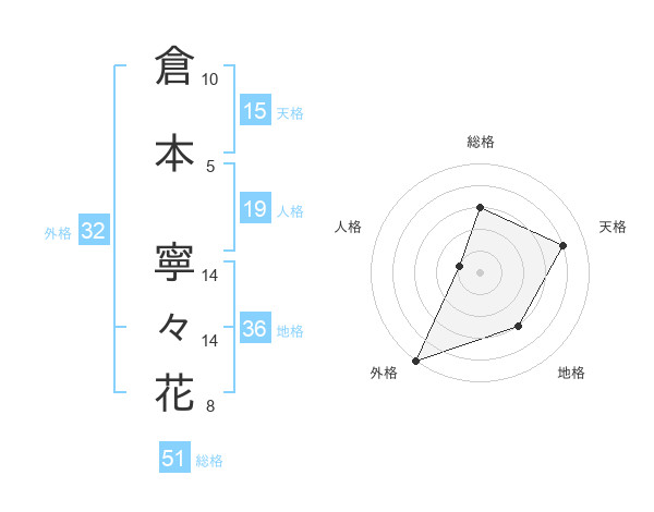 倉本 寧々花さんを姓名の画数から五運を鑑定