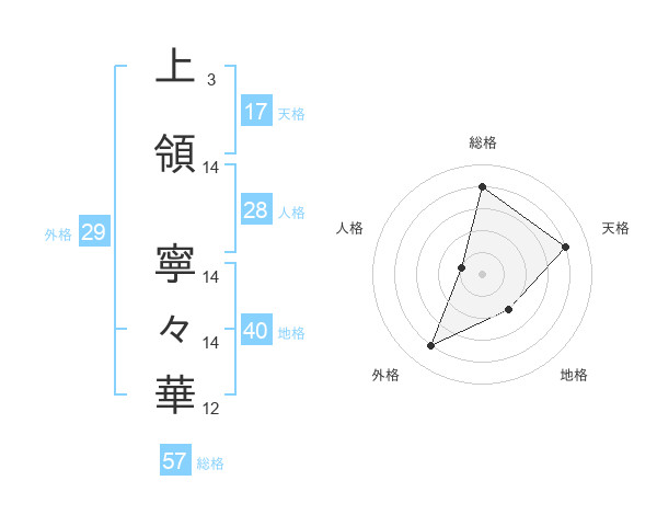 上領 寧々華さんを姓名の画数から五運を鑑定