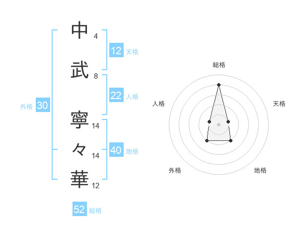 中武 寧々華さんの総格は52画の4点!