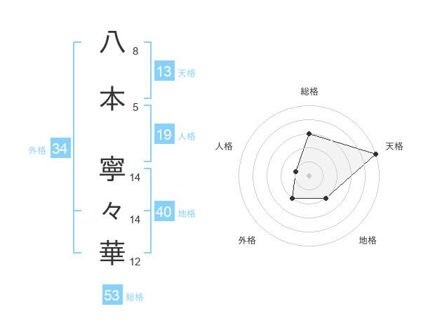 八本 寧々華さんの総格は53画の3点!
