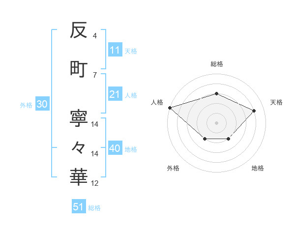 反町 寧々華さんの総格は51画の3点!