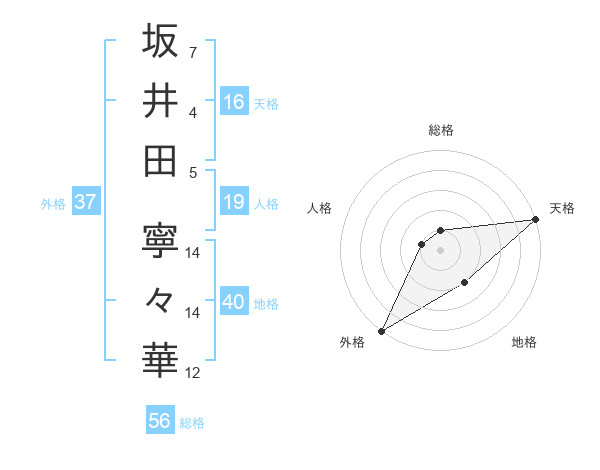 坂井田 寧々華さんを姓名の画数から五運を鑑定