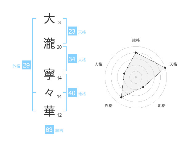 大瀧 寧々華さんの総格は63画の4点!