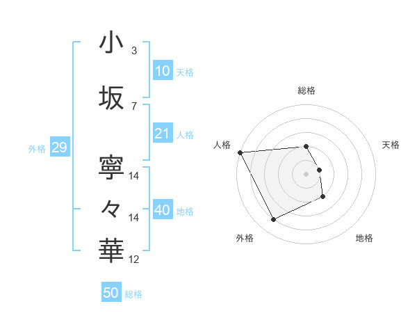 小坂 寧々華さんを姓名の画数から五運を鑑定