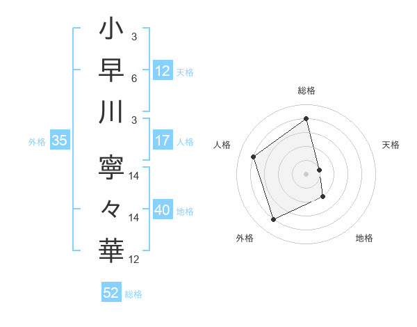 小早川 寧々華さんを姓名の画数から五運を鑑定