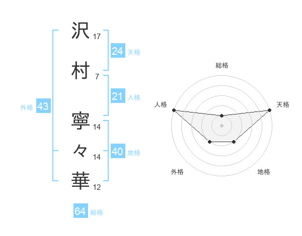 沢村 寧々華さんの天格は24画の5点!