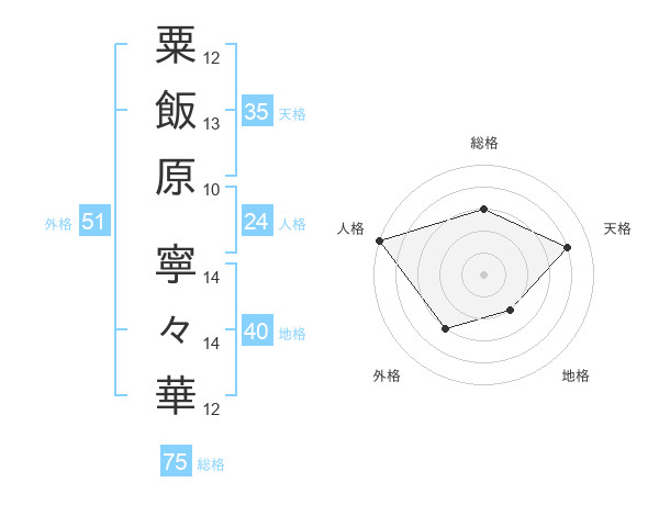 粟飯原 寧々華さんを姓名の画数から五運を鑑定
