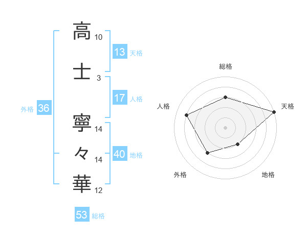 高士 寧々華さんの天格は13画の5点!