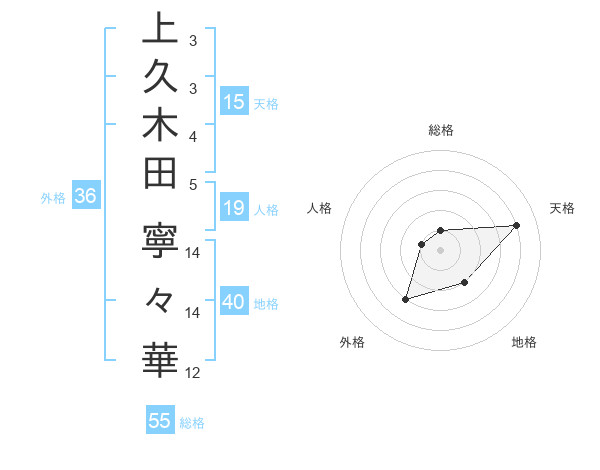 上久木田 寧々華さんを姓名の画数から五運を鑑定