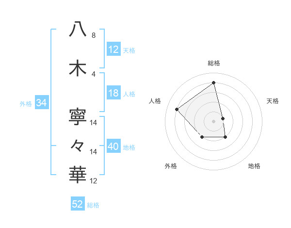八木 寧々華さんの総格は52画の4点!