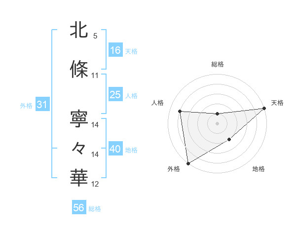 北條 寧々華さんの外格は31画の5点!