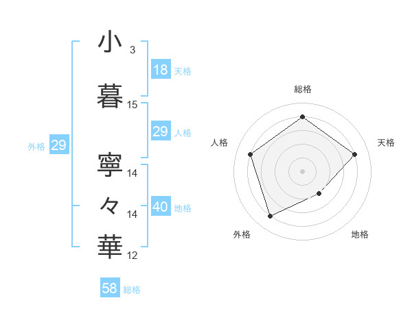 小暮 寧々華さんを姓名の画数から五運を鑑定