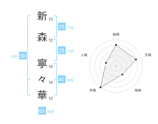 新森 寧々華さんの総格は65画の4点!