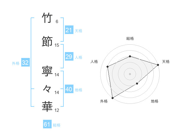 竹節 寧々華さんの総格は61画の3点!