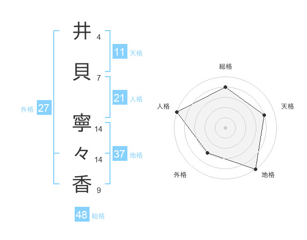 井貝 寧々香さんの総格は48画の4点!