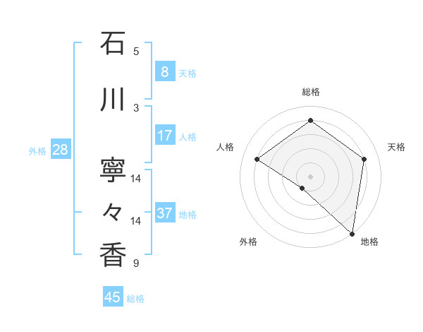 石川 寧々香さんの総格は45画の4点