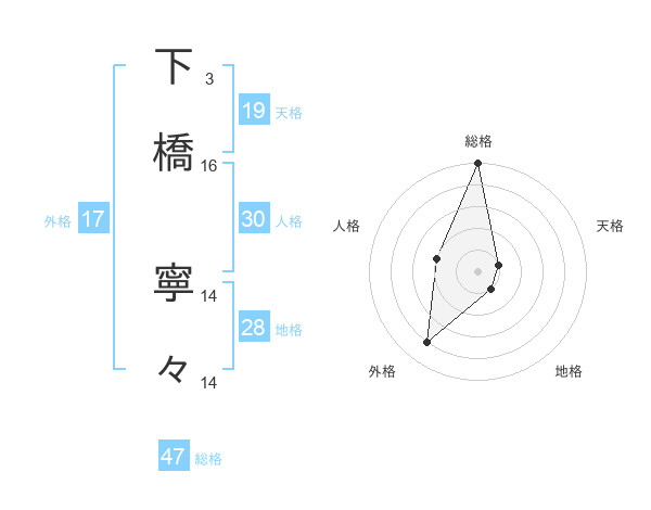 下橋 寧々さんを姓名の画数から五運を鑑定