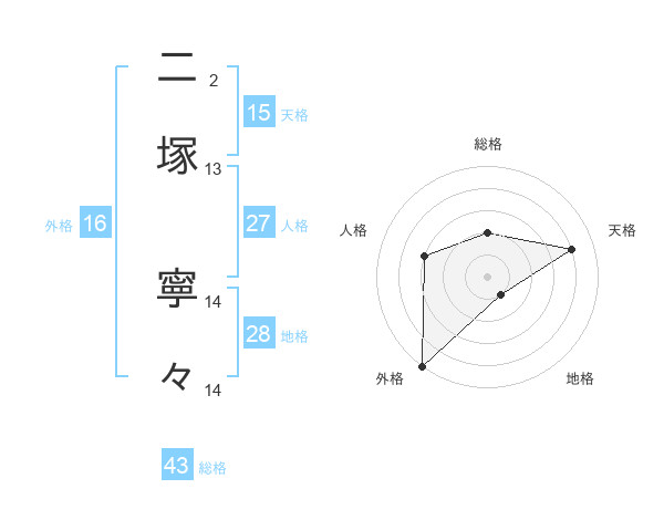 二塚 寧々さんの天格は15画の4点!