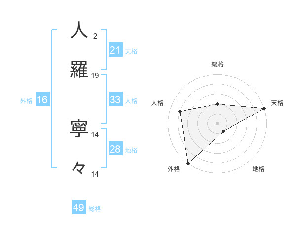 人羅 寧々さんの天格は21画の5点!