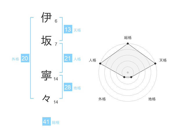 伊坂 寧々さんを姓名の画数から五運を鑑定