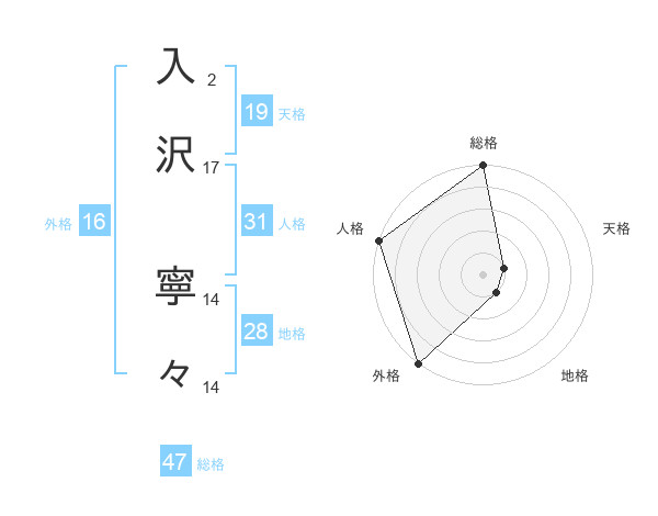 入沢 寧々さんの総格は47画の5点!