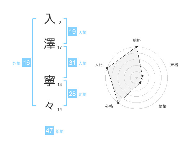 入澤 寧々さんの総格は47画の5点!
