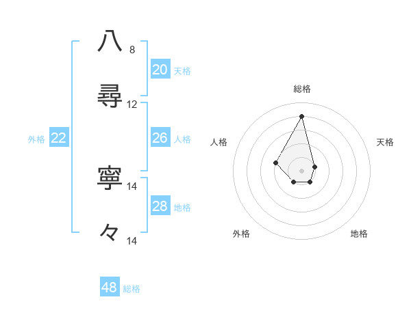 八尋 寧々さんの総格は48画の4点!