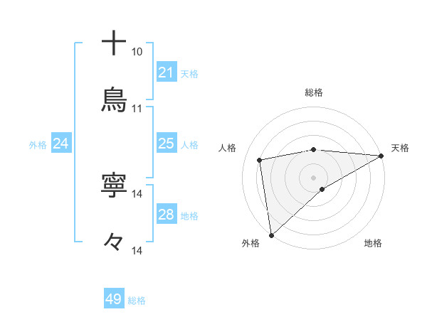 十鳥 寧々さんの天格は21画の5点!