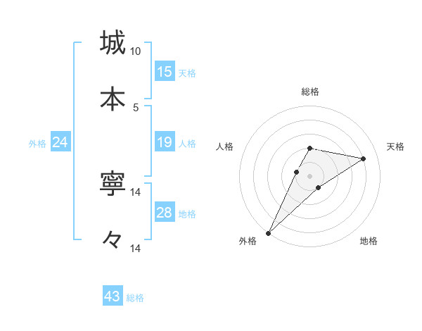 城本 寧々さんの外格は24画の5点!