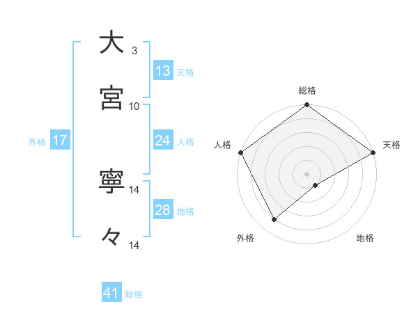 大宮 寧々さんの外格は17画の4点!