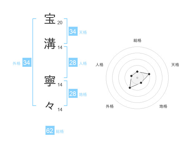 宝溝 寧々さんの天格は34画の2点!