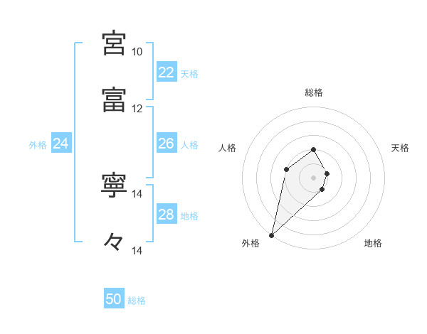 宮富 寧々さんの総格は50画の2点!