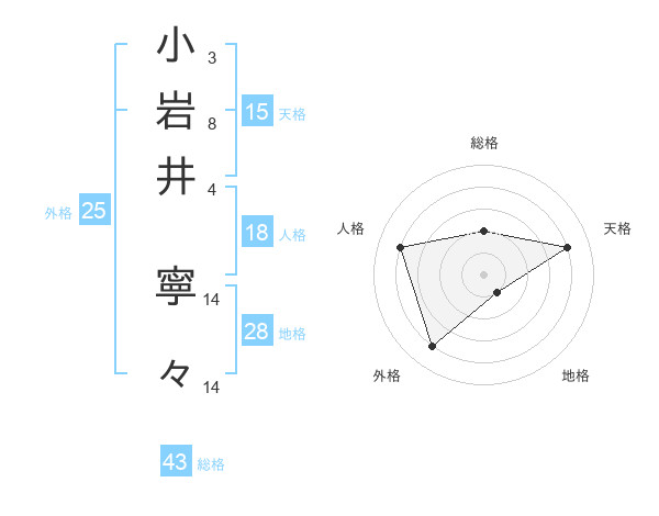 小岩井 寧々さんを姓名の画数から五運を鑑定