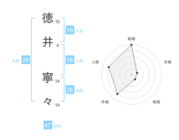 徳井 寧々さんの総格は47画の5点!