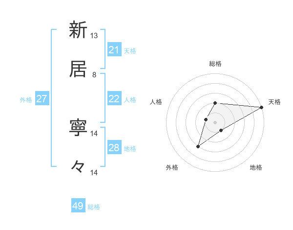 新居 寧々さんの総格は49画の2点!