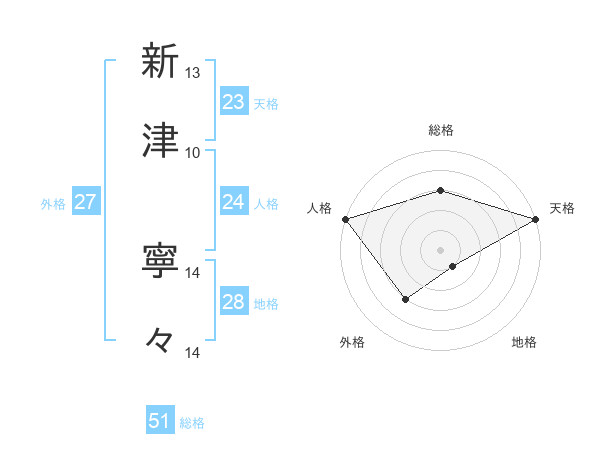 新津 寧々さんの総格は51画の3点!