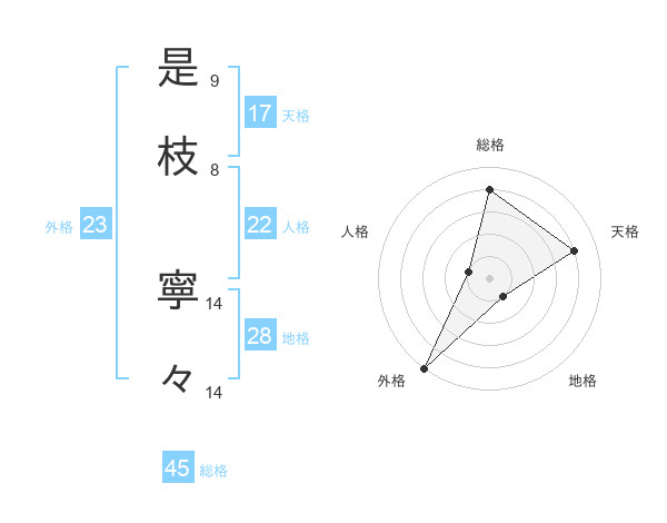 是枝 寧々さんの総格は45画の4点!