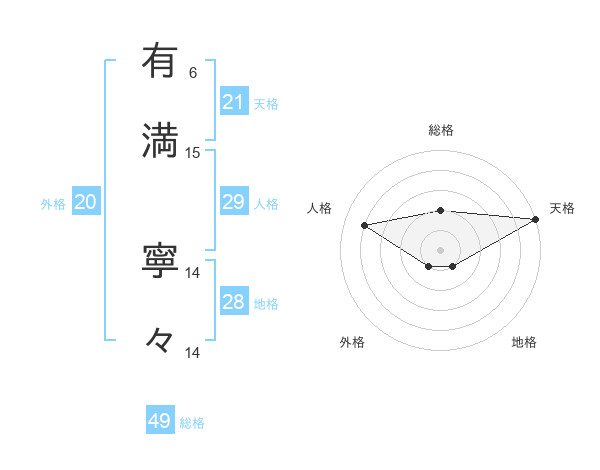 有満 寧々さんの天格は21画の5点!