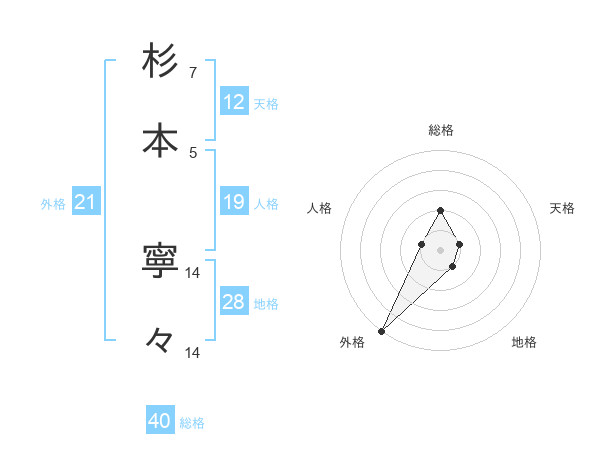 杉本 寧々さんを姓名の画数から五運を鑑定