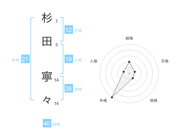 杉田 寧々さんを姓名の画数から五運を鑑定